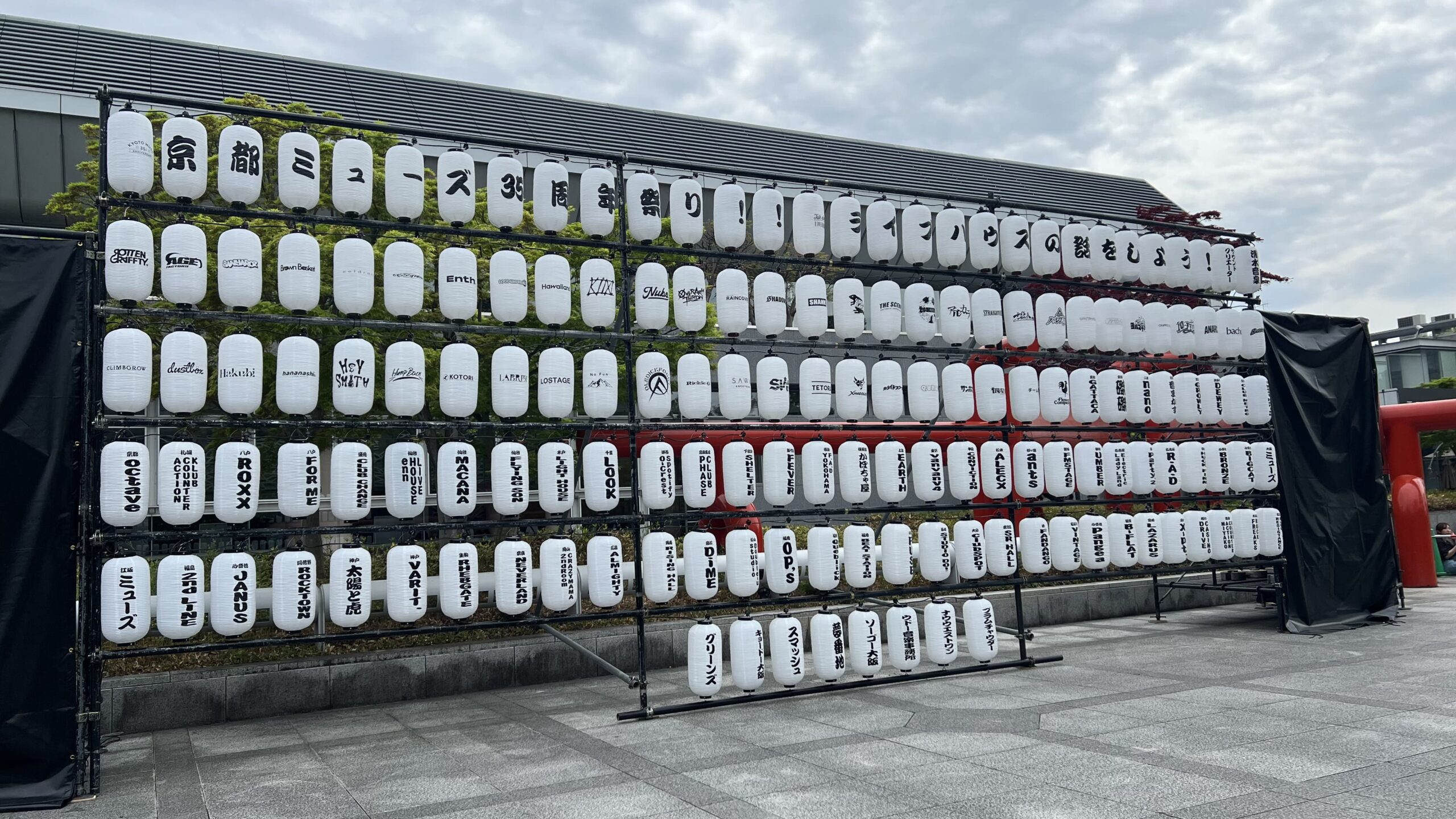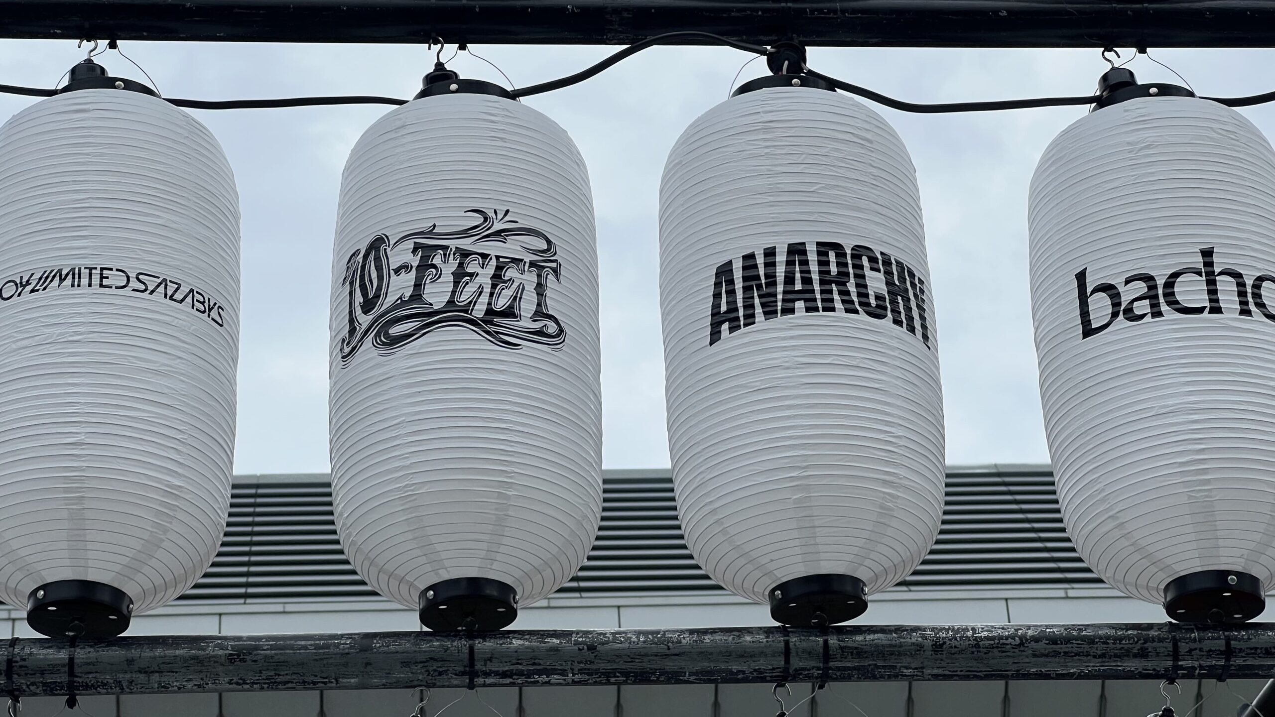 会場に到着してまず目を引いたのが、ずらりと並んだアーティスト名入りの提灯!これがまた風情があって、お祭り気分を盛り上げてくれます。お気に入りのバンド名を見つけて、思わず写真を撮ってしまいました。