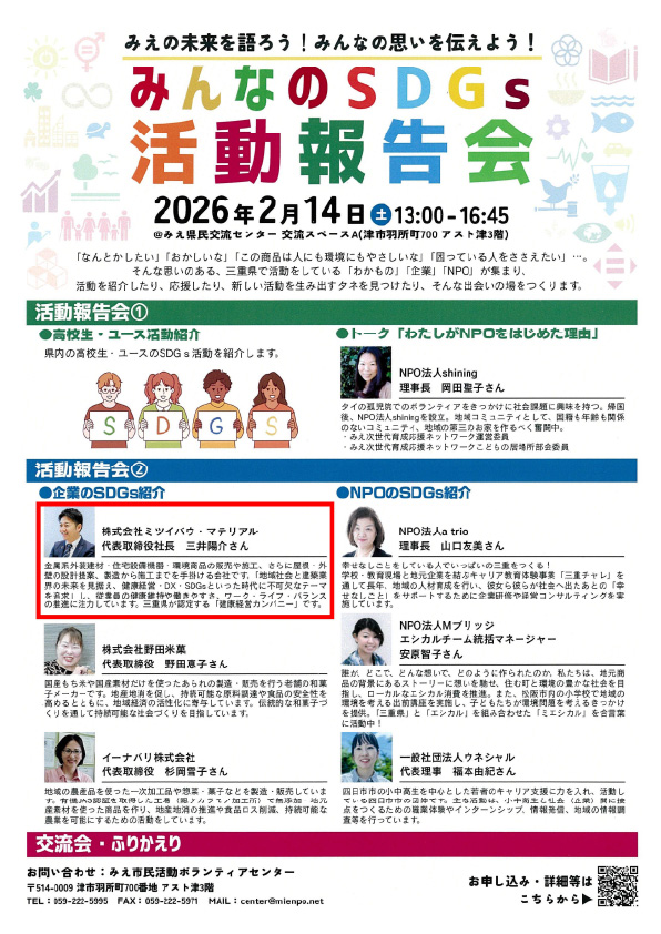 2026.02.02 『みんなのSDGs活動報告会』に社長の三井が登壇いたします