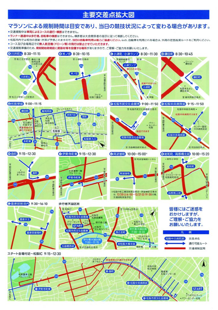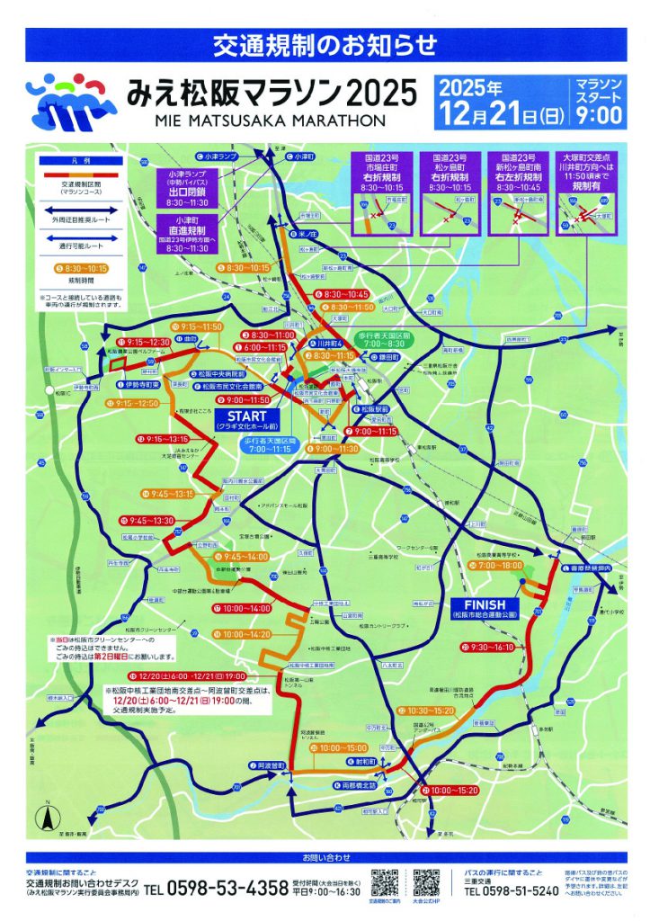 また、当日はマラソン開催に伴い、交通規制が実施されます。