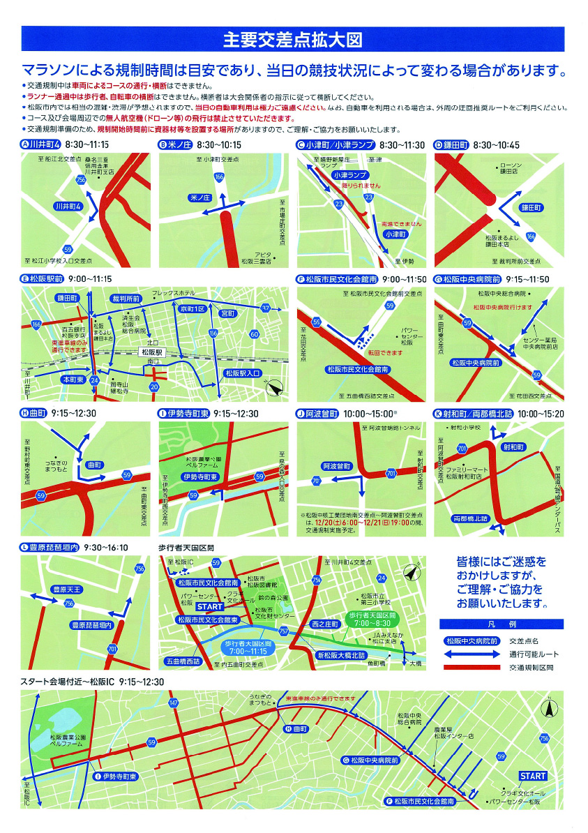 また、当日はマラソン開催に伴い、交通規制が実施されます。