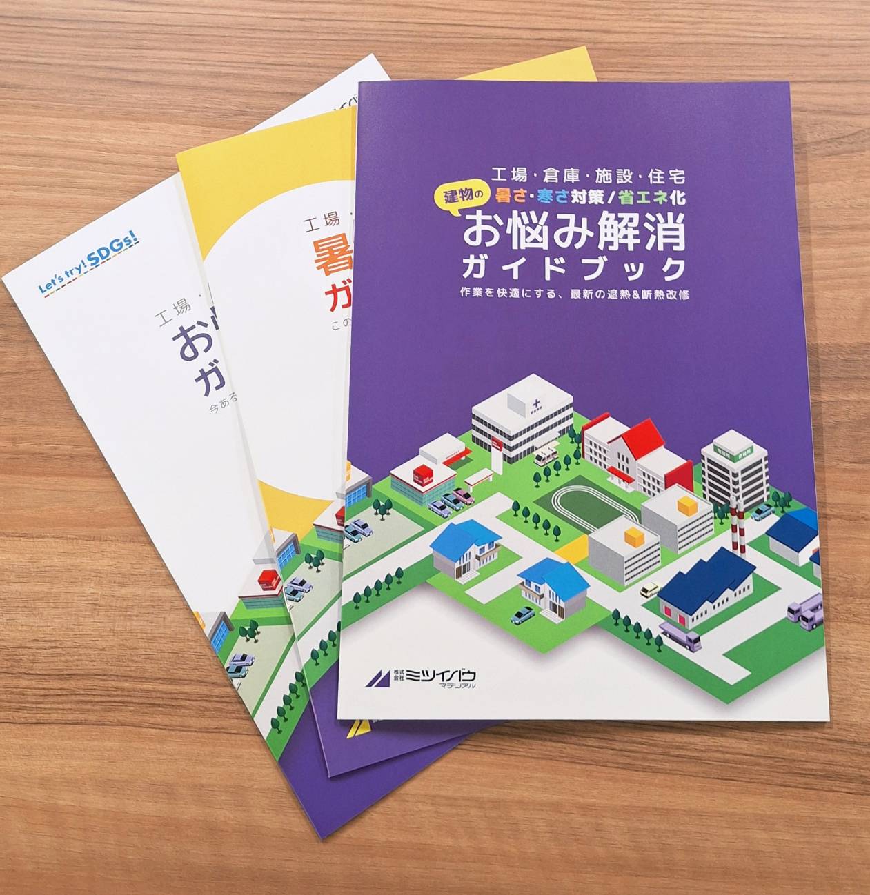 弊社では、「お悩み解消ガイドブック」という名前の会社概要の冊子を作成しております。