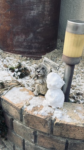 昨日もこの辺りでは珍しく雪が降り子供達がはしゃいで小さいですが雪だるまを作っていました。