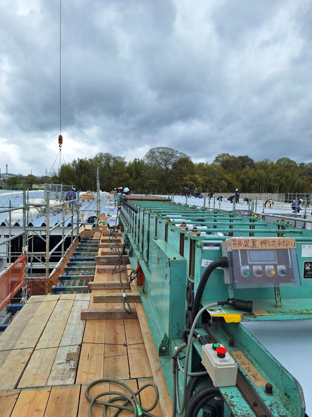 当日、現場に到着すると、大きな成型機と広い屋根のスケールに圧倒されました。