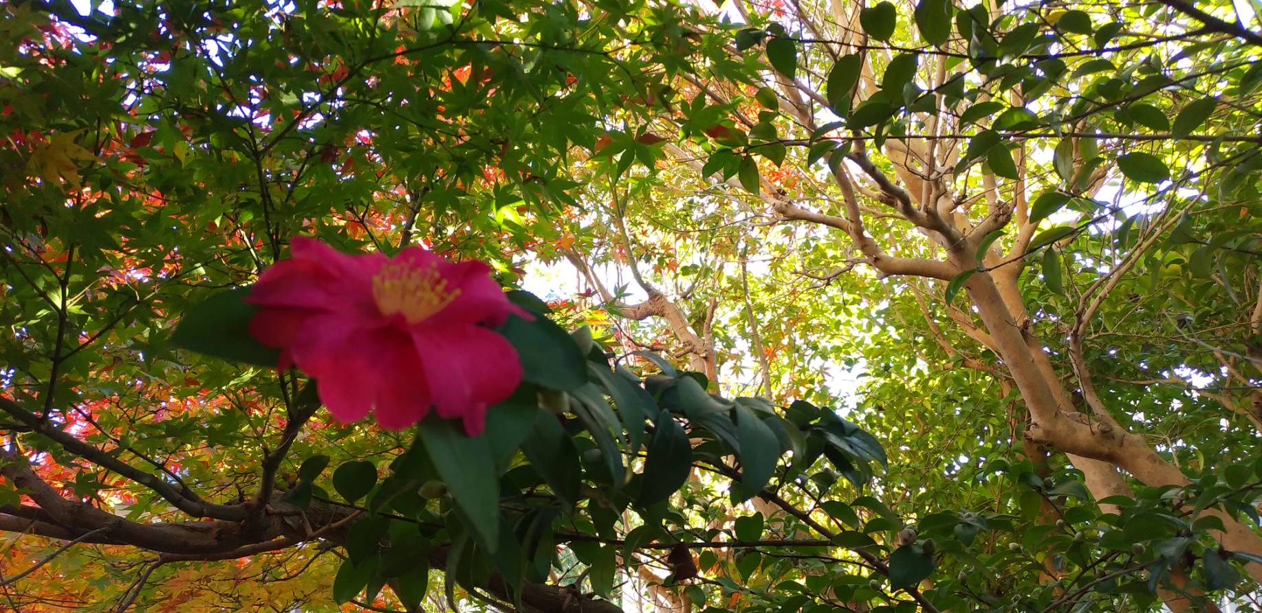 2025.12.04雑記 初冬の風物詩 12月になり、少しずつ寒くなってきました。街や庭の木にも寒い季節がやってきています。 銀杏のキイロ メタセコイヤのオレンジ 紅葉の赤 庭の紅葉も色付いて、山茶花の木に1輪だけ花が咲いていました。 写真におさめると、荒庭もきれいに見えます。 落ち葉の絨毯を楽しみにしています。 設計部の森川でした。