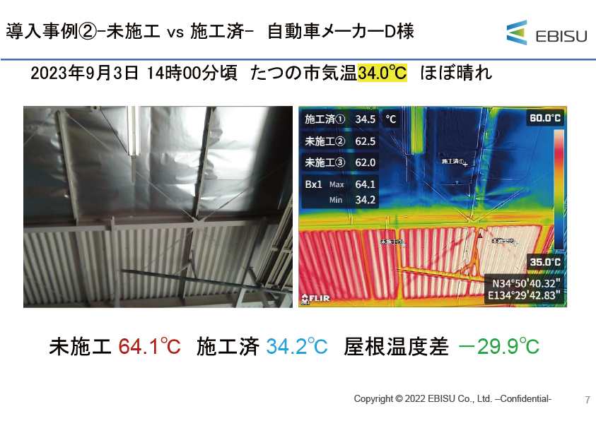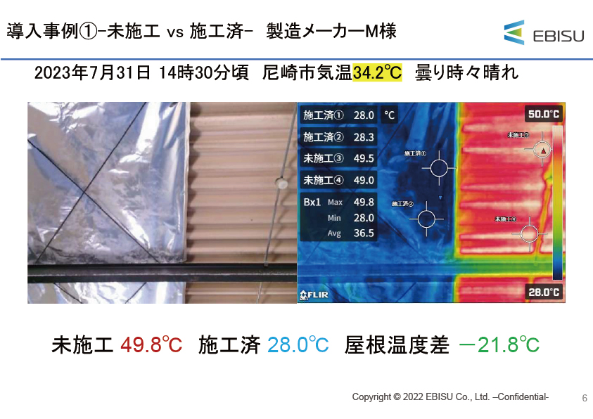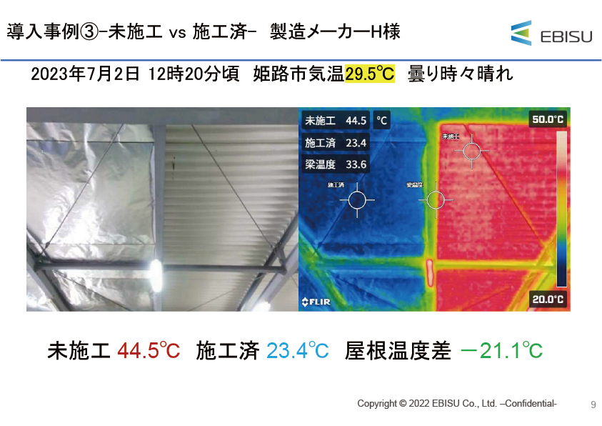 いずれも未施工・施工済の屋根温度差は、-20℃~-30℃になりました。