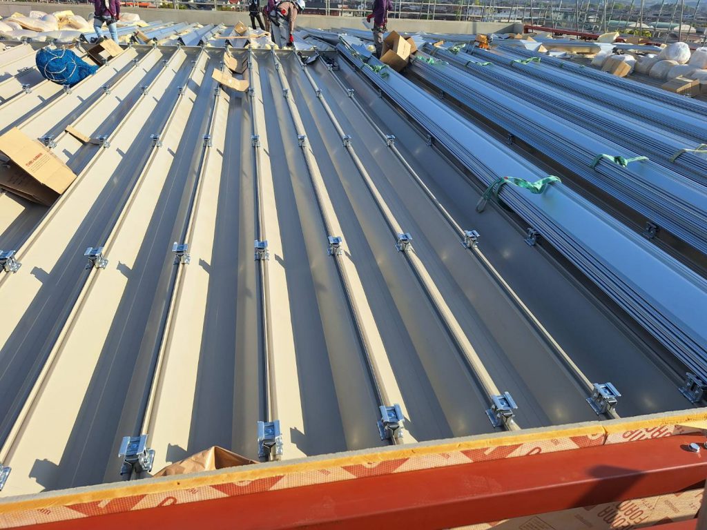 ステージ足場を設けて屋根の上に成型機を設置し、その場で材料を流す方法など、柔軟に対応しています。