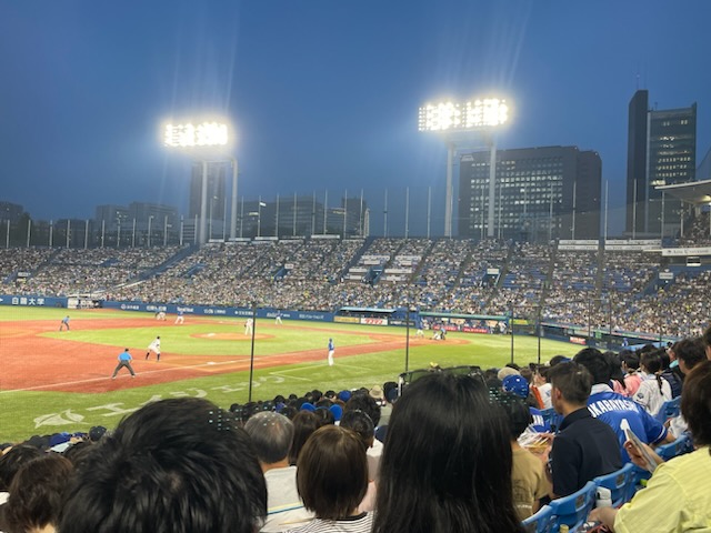 ドラゴンズは今年も定位置あたりの順位をうろうろしているので、正直もうチームの勝敗はどうでもいいのですが、大都会のビル群に囲まれた屋外球場で夕暮れ時にビールを飲みながら野球観戦する雰囲気は最高でした!