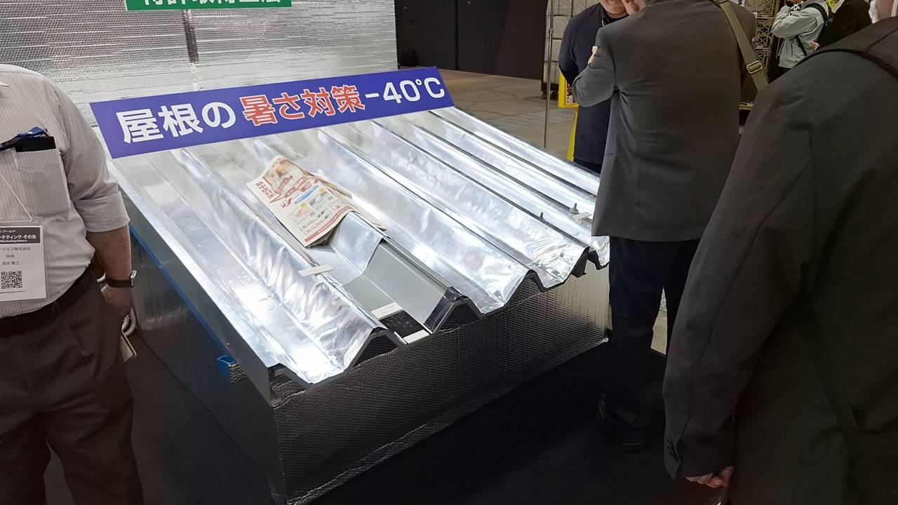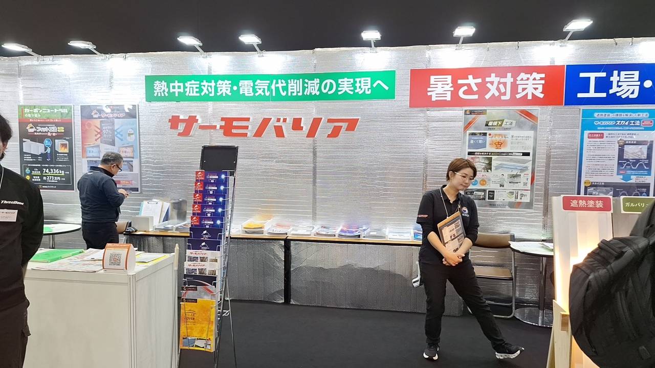 多くの企業様が参加されている中、熱中症対策を目的としたサーモバリアという外装用遮熱材に目を引かれました。