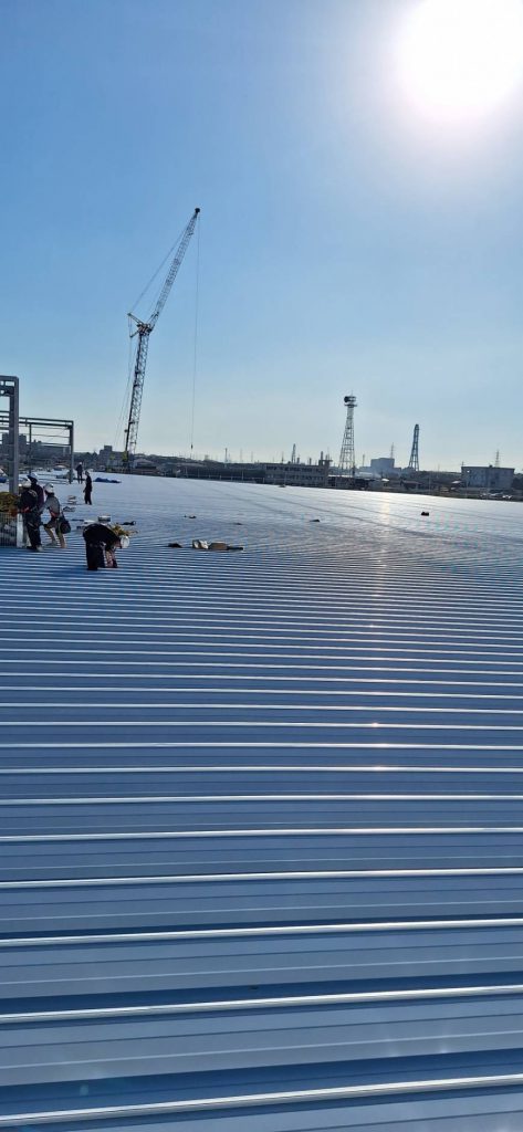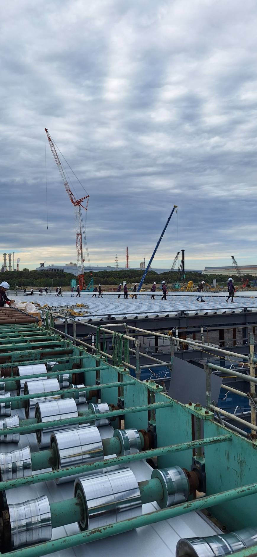 2025.11.13現場日記 過去最大の現場 製造課のゴックです。 今回、カインズの現場成型に3日間泊まりで作業しました。 これまでの中で一番大きな現場成型で、とてもやりがいのある現場でした。 忙しい日々でしたが、工務のみんなと協力しながら、機械も順調に動き、天気にも恵まれました。 そのおかげで、大きな問題もなく無事に完了することができました。 完成した広い屋根を見渡すと、本当に達成感があり、ちょっと誇らしい気持ちになりました。