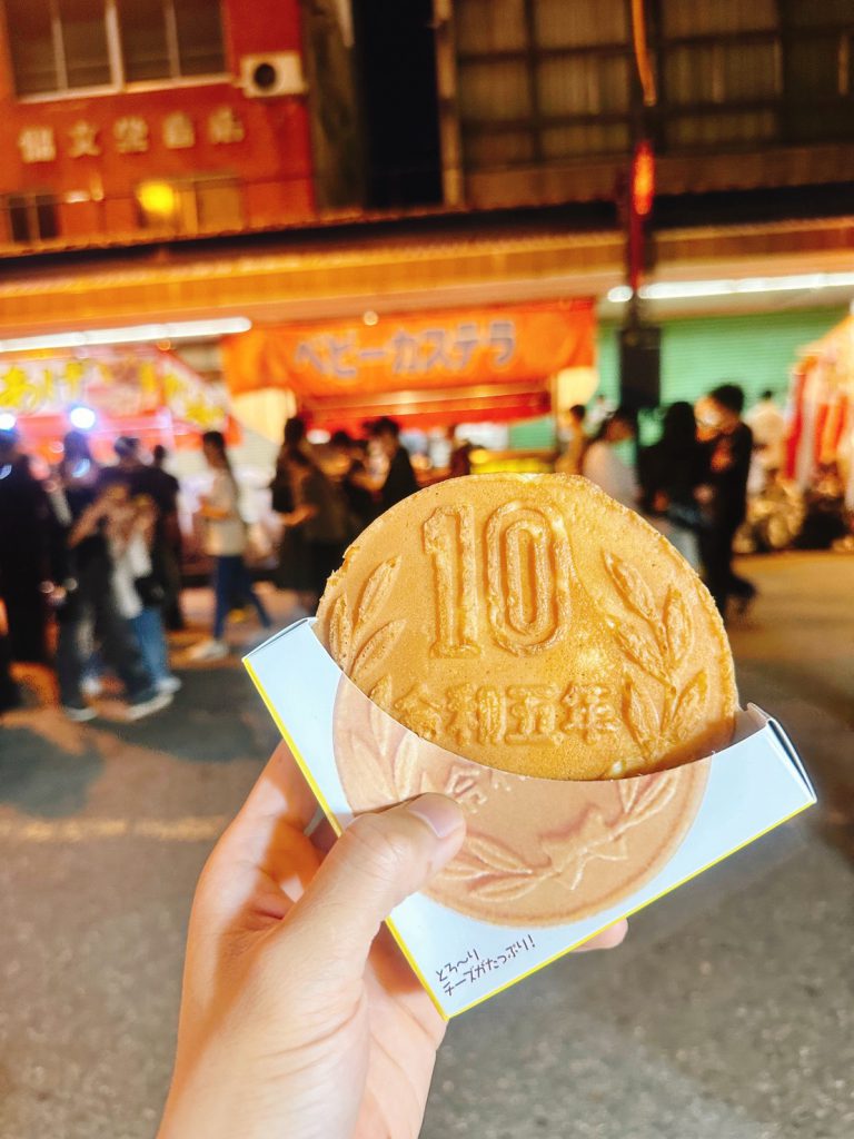 2025.11.11雑記 松阪のお祭りと10円の形をしたお菓子 工務積算課のタンです。 松阪の祭りで初めてこのお菓子を食べました。 見た目は10円玉みたいで面白かったです! 外はサクサクで、中はチーズがとろ〜りとしていて、とてもおいしかったです。 お祭りの雰囲気の中で食べると、さらに特別な味がしました。