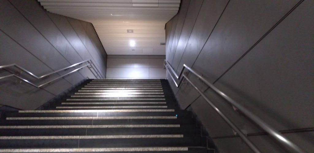 こちらはみなとみらい線、夜の高島駅の階段。