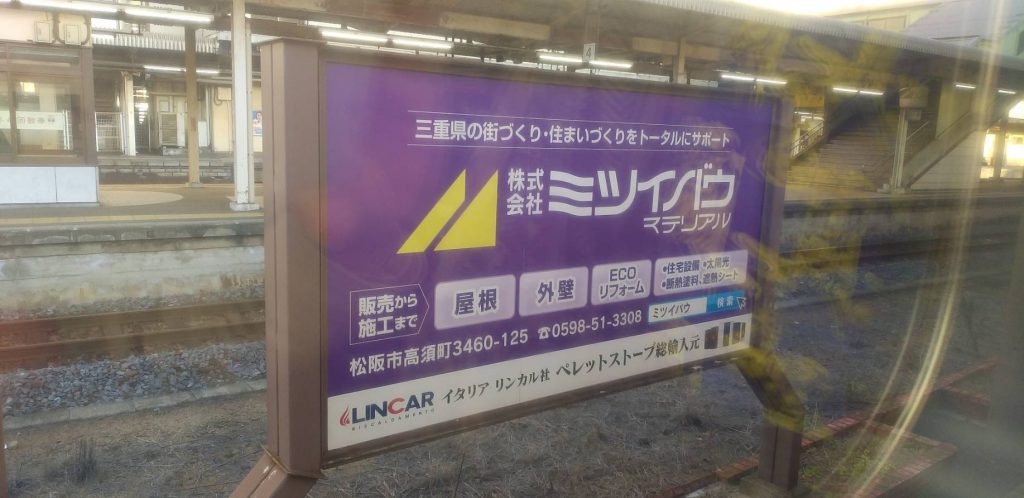 帰りの電車が我社の看板の横に停車しました!