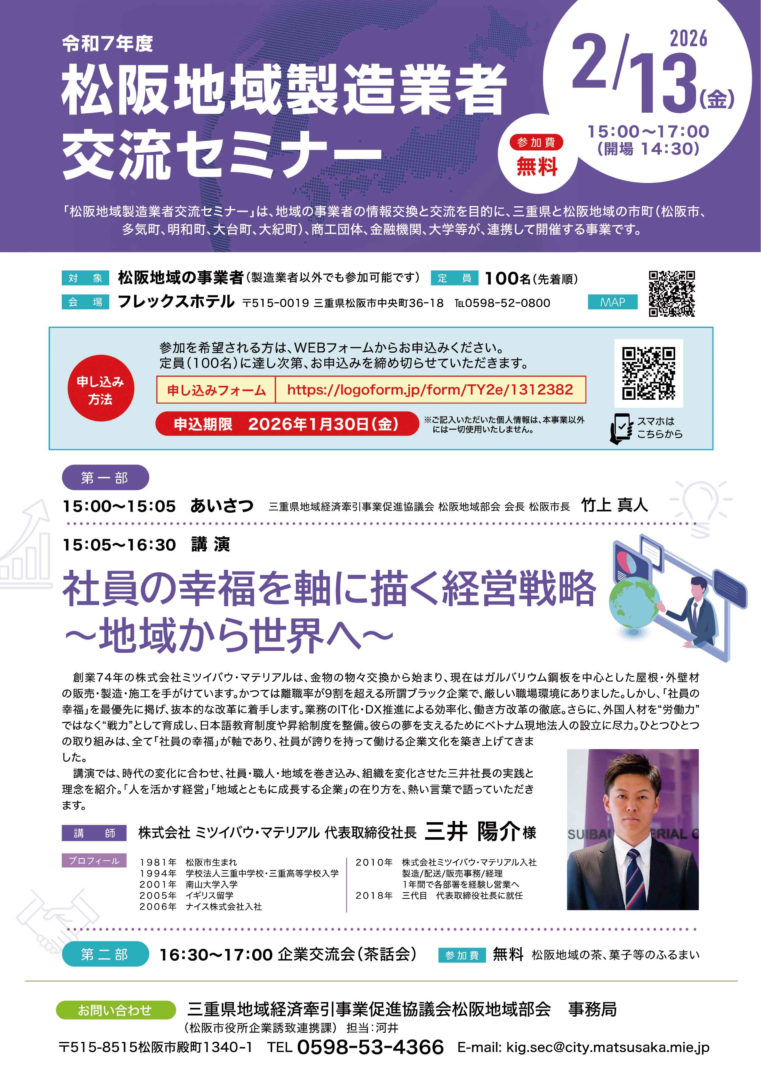2025.12.24 『松阪地域製造業者交流セミナー』に社長の三井が登壇します